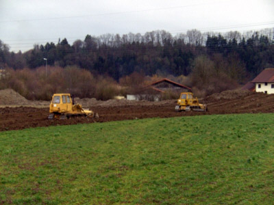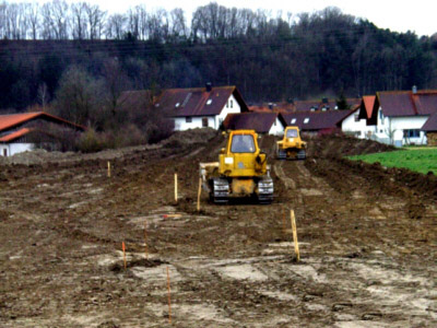 Einsatz unserer Planierraupen beim Bau des Volksfestplatzes in Kraiburg.